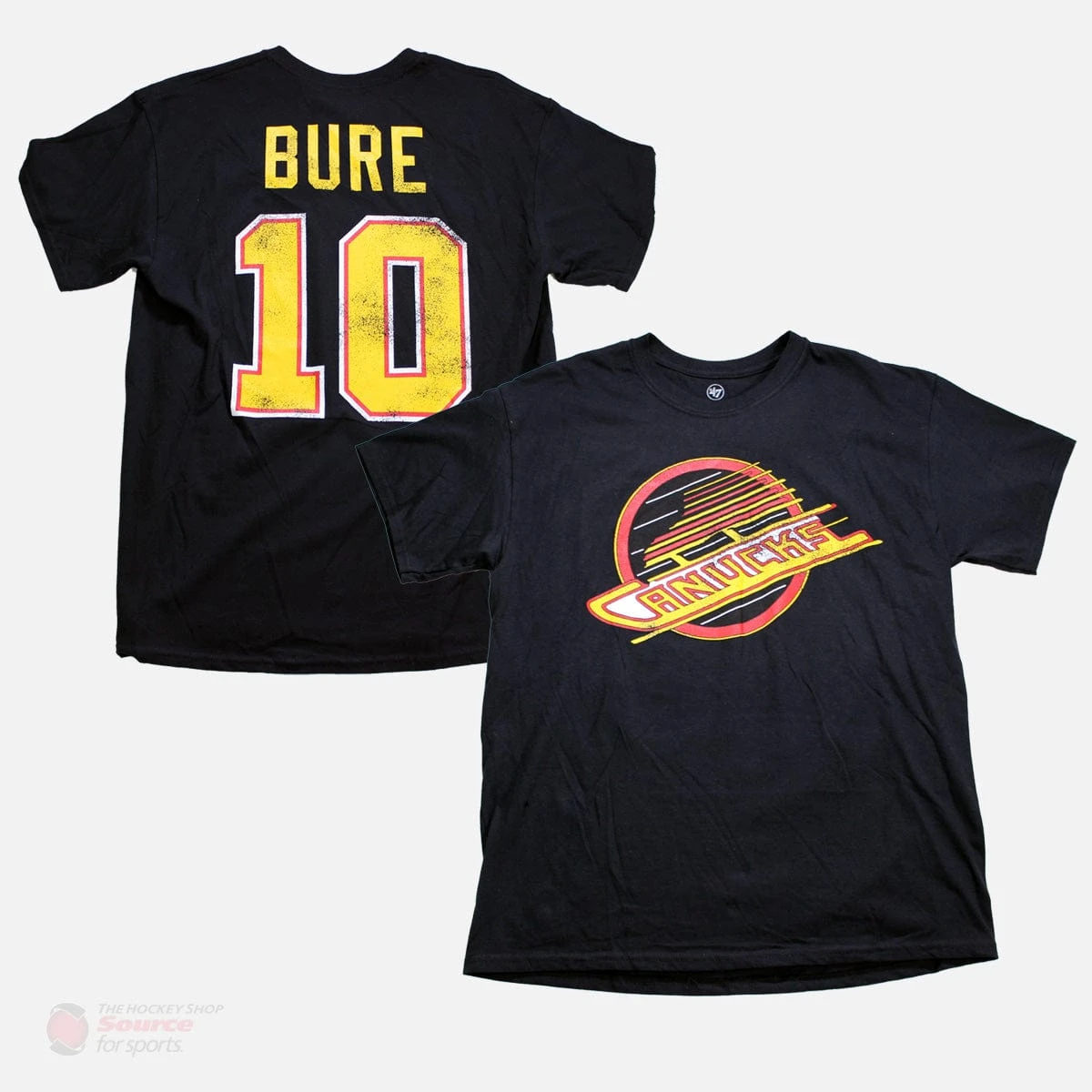 Skate down memory lane with the ’47 Pavel Bure Alumni shirt. The Russian Rocket played some of his most memorable moments for the Vancouver Canucks and now, you can proudly wear his name and number on your back. The vintage skate logo is shown on the front, with Bure’s “10” shown on the back.