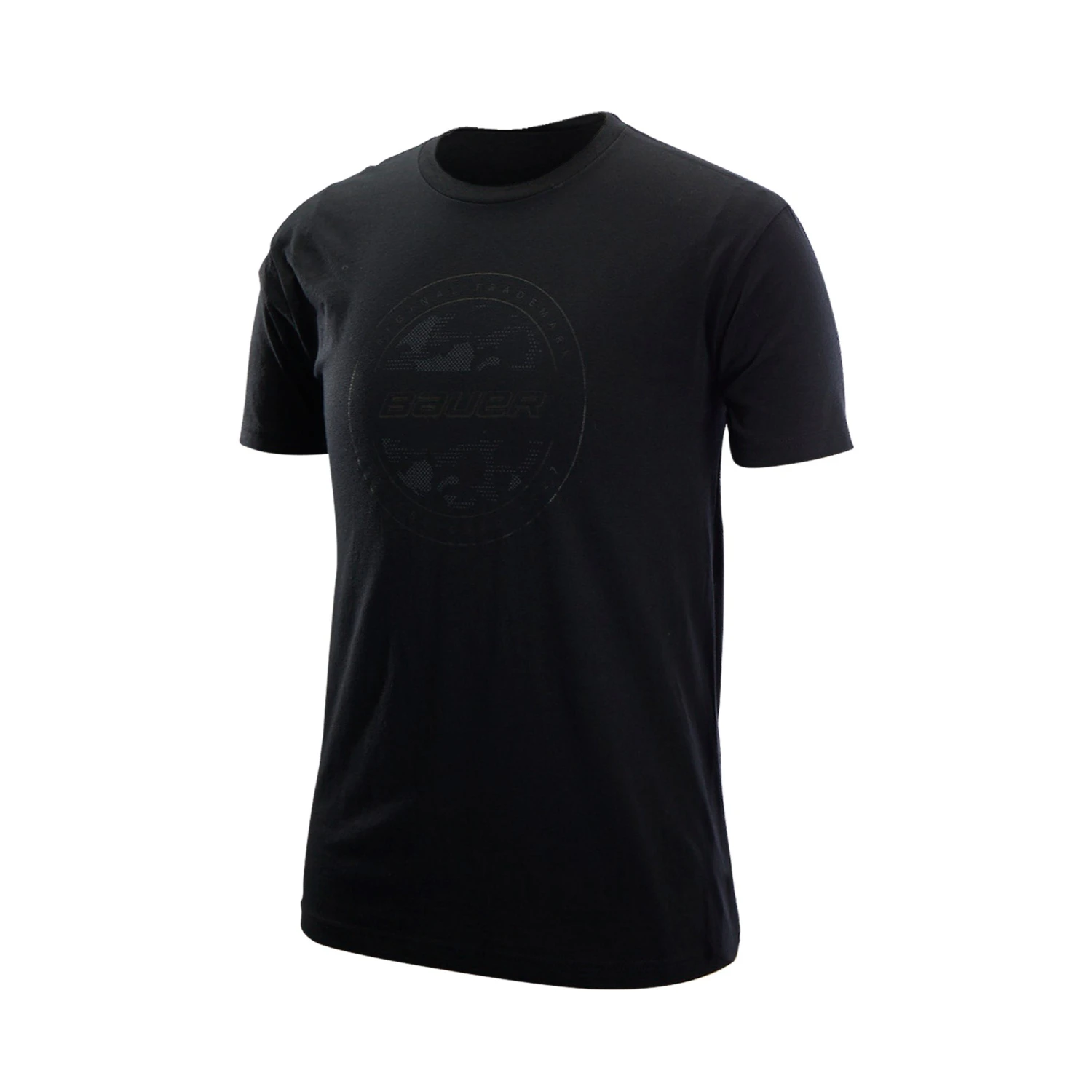 The Bauer Camo Youth Shirt is the perfect shirt to wear any place and anywhere. It features stealthy screen printed graphics on the front and a tapered hockey fit.