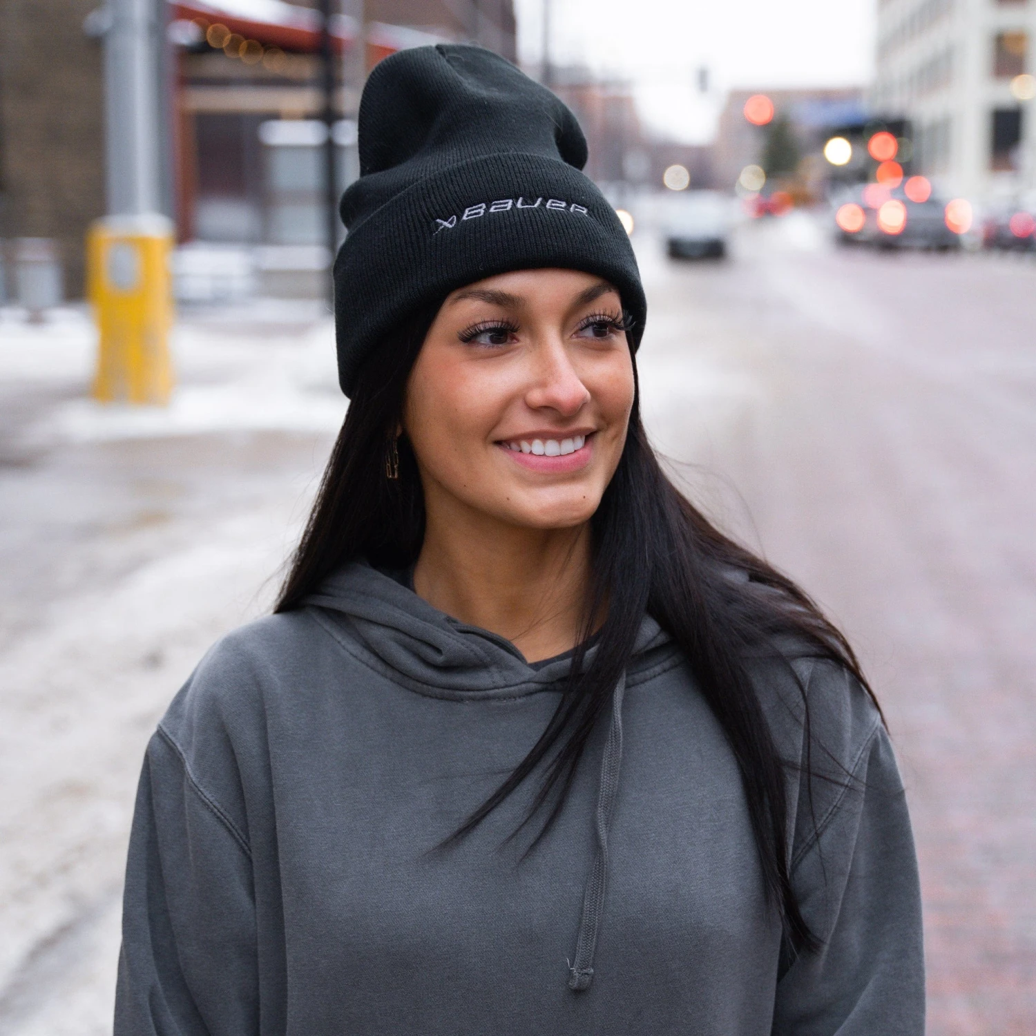 100% acrylic black toque with 12” knit and adjustable cuff. One size fits most. Embroidered Bauer logo/icon lockup.