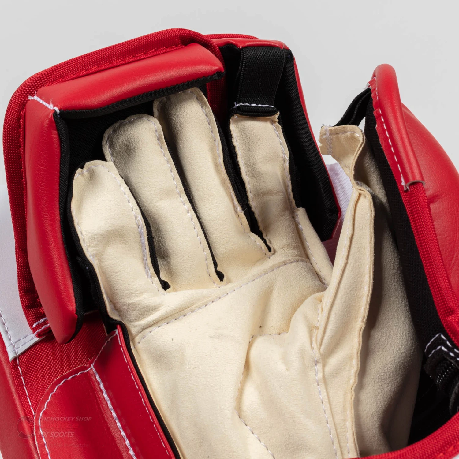 The design on the GSX blocker finger protection is somewhat similar to whatโs featured on the Bauer 3S model. The GSX finger protection version comes in slightly shorter along the pinky, middle, and ring fingers. As well the finger protection is entirely foam and synthetic leather.