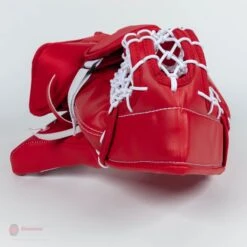 The Bauer GSX SR trapper is available in White, Black, Navy, and Red. The GSX Goalie Glove is available in Regular hand (worn on your left hand) in all colourways, and Full Right (worn on your right hand) in All White.
