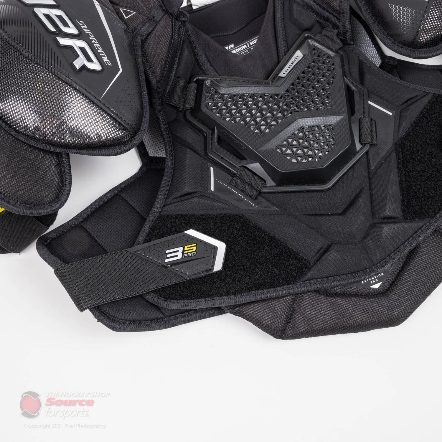 The Supreme 3S Pro keeps the same performance element as the UltraSonic with the Active Motion Protection(AMP) shoulder cap with Vent Armour Foam. Bauer has specifically designed the AMP technology to allow the shoulder cap to move with you. The Vent armour offers elite level protection, breathability, and doesn’t sacrifice any mobility.