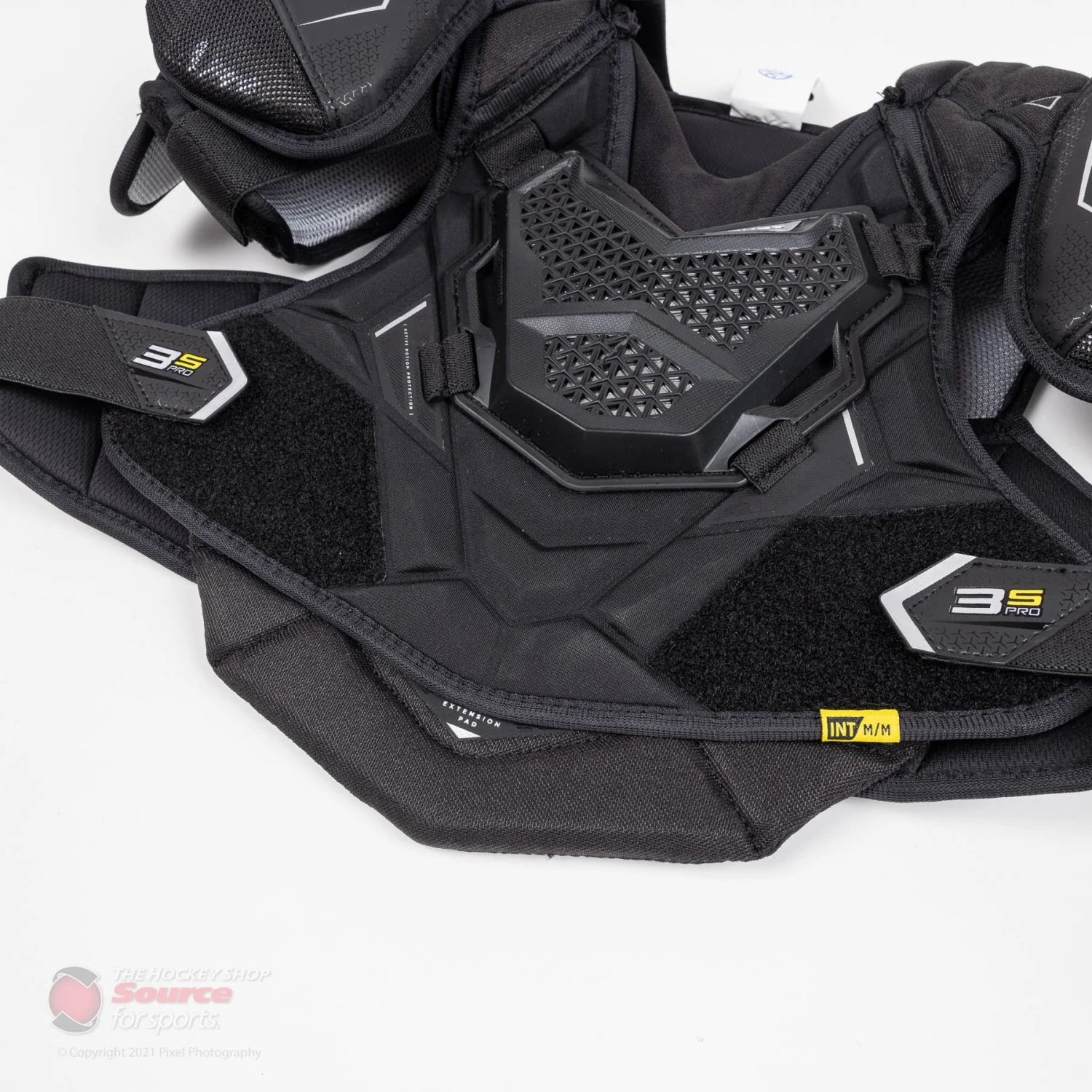 The 3S Pro shoulder pad features an adjustable split bicep. The AMP technology design within the bicep pieces has no restriction in movement and allows you to have a full range of motion on the ice.
