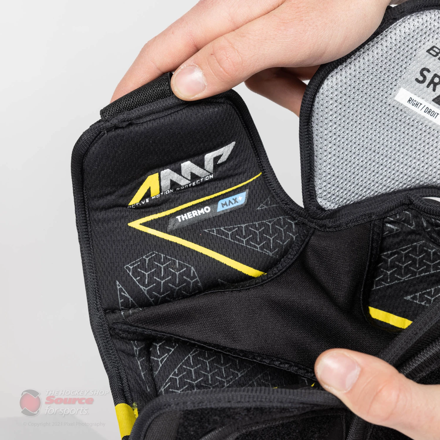 Bauer’s Thermo Max+ liner is infused with an antimicrobial and sweat management system to keep your body temperature regulated and allow the shoulder pad to dry quickly after use.