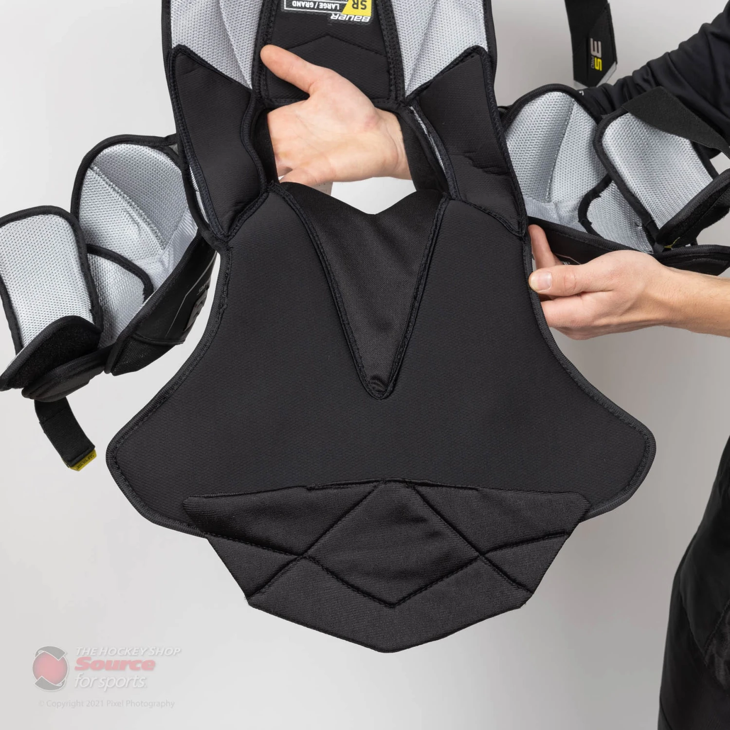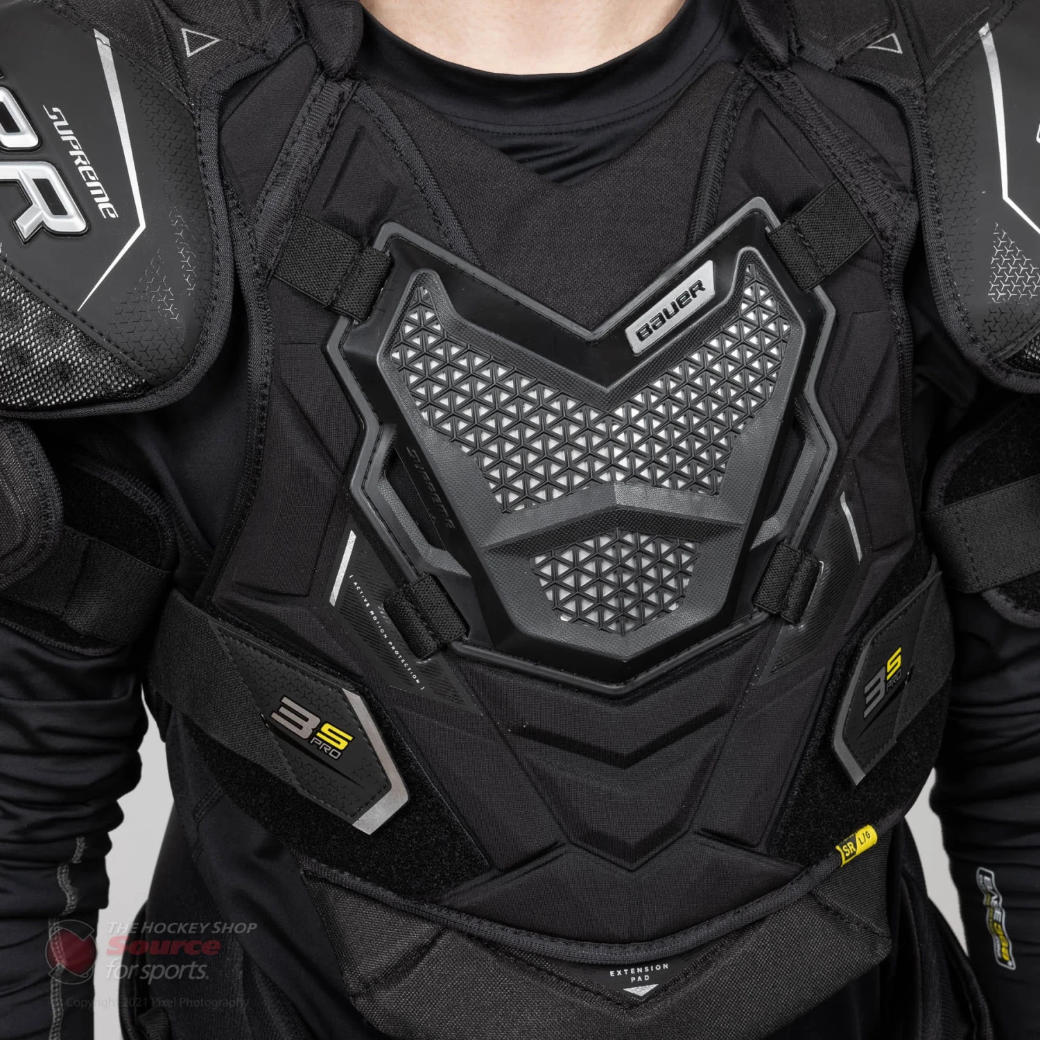 The Supreme 3S Pro keeps the same performance element as the UltraSonic with the Active Motion Protection(AMP) Vented Armour Foam shoulder cap. Bauer has specifically designed the AMP technology to allow the shoulder cap to move with you. The Vent armour offers elite level protection, breathability, and doesn’t sacrifice any mobility.
