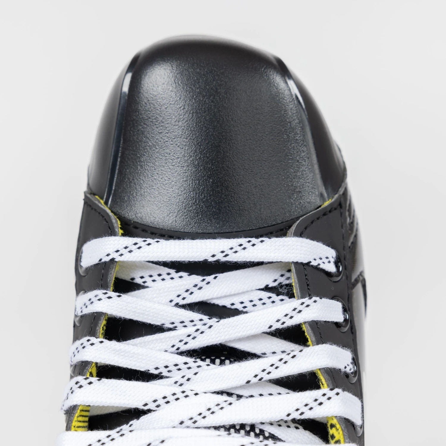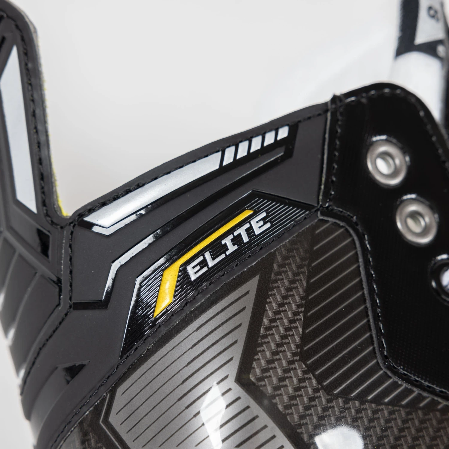 Keeping to the classic theme of the Supreme line, the Elite is mainly coloured black with a bit of shine and yellow graphics and accents. โEliteโ and the new Bauer logo are also on display above the ankles and heel.
