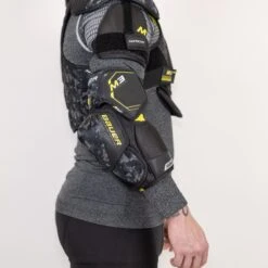 The pads use Bauer’s Thermomax sub liner, which is a moisture-wicking liner material designed to manage sweat and moisture efficiently. It helps keep players dry and comfortable throughout the game by wicking away moisture from the body and allowing it to evaporate quickly.