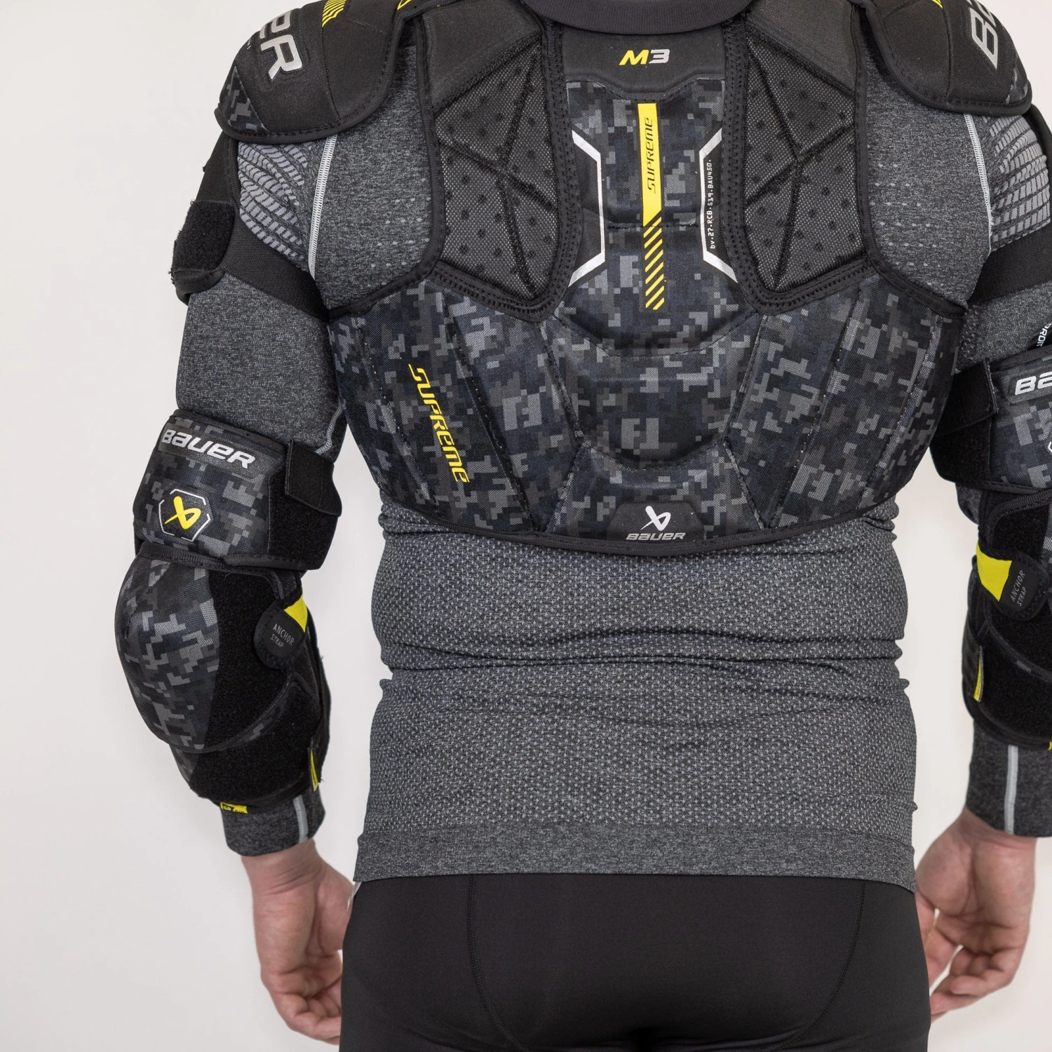 Experience the next level of protection and performance with the new Supreme Mach protective line from Bauer for the 2023 season. The gear is designed to offer great protection against impact in all directions while still allowing for lots of maneuverability. The M3 is competitive-level equipment designed for comfort and safety while keeping to a more affordable price point. Features include a split forearm design, a Thermomax sub liner, and a 2-piece cap construction.