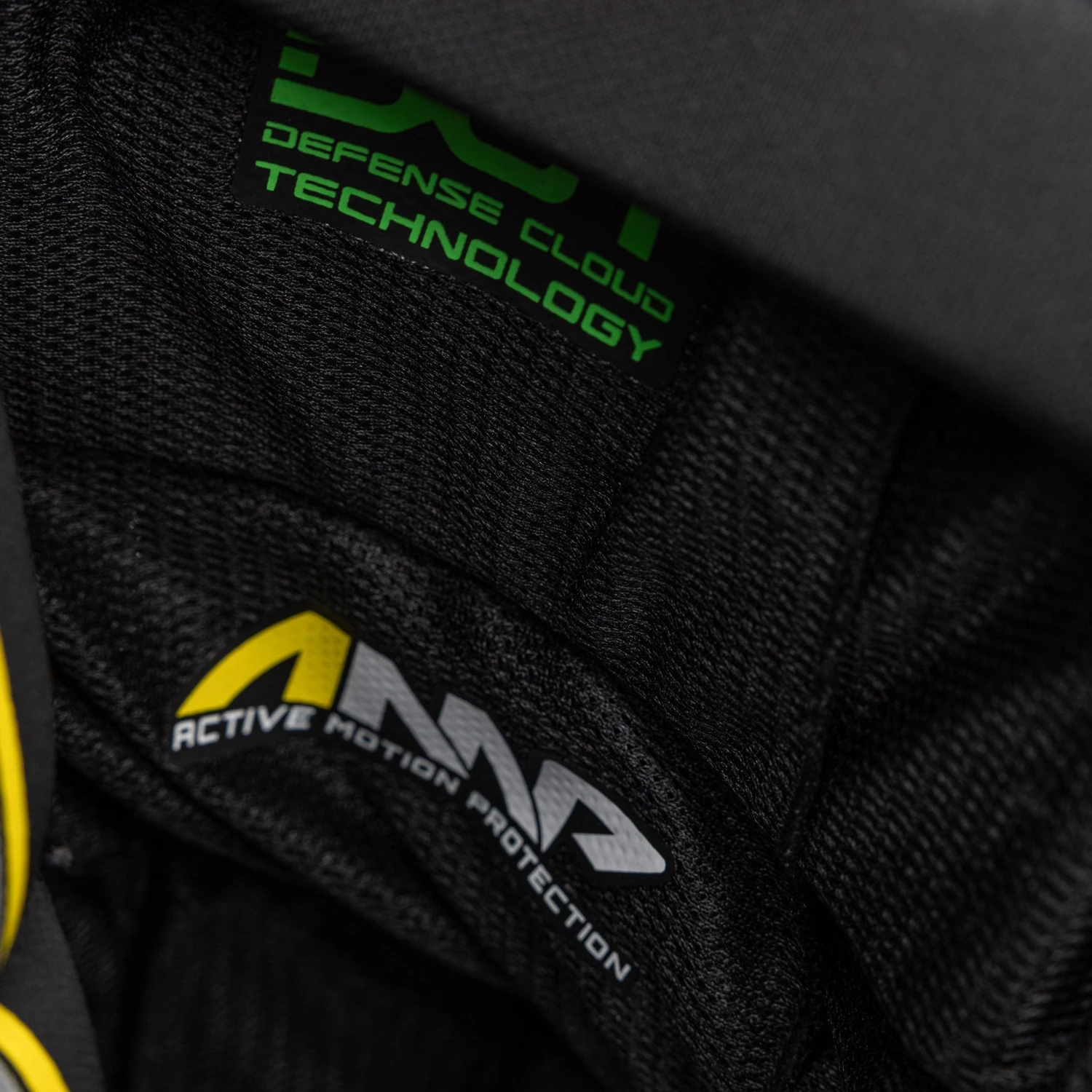 The kidney protection features a segmented design, providing flexibility and a contoured fit to adapt to the player’s movements, and the Flex Forward break in the kidney area allows for an increased range of motion without compromising protection. The hip area incorporates an Active Motion Performance (AMP) Split hip guard, equipped with Defense Cloud Tech (DCT) foam, delivering the ideal setup for optimal mobility while ensuring reliable coverage and protection.