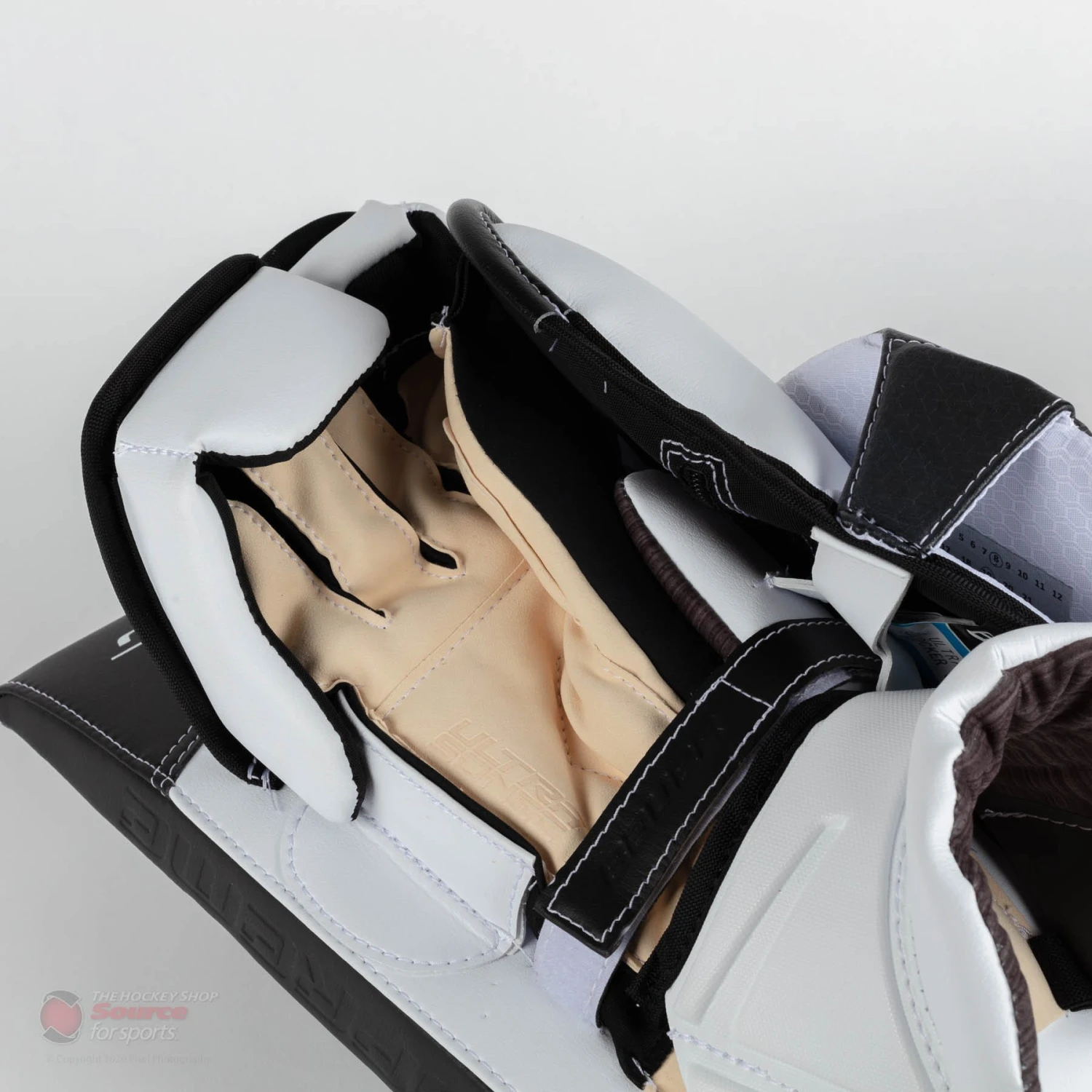 The shape of the blocker is going to be extremely familiar to those who have used a Supreme blocker recently. The side hand shape and protection is similar to the 2S Pro, providing protection with Bauerโs CURV Composite and Shocklite materials. Stock with Bauerโs UltraSonic blocker, there is no thumb pillow but can be added in when going the custom route.