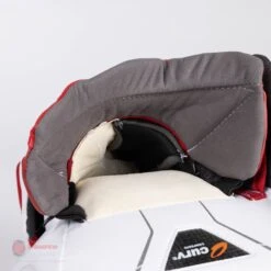 The internals of the Hyperlite feature a mix of Bauer’s Rebound Boost core and Curv Composite. Both Rebound Boost and Curv work together to create a rigid blocker board, with extremely active rebounds. Debuting on Bauer’s first 1S blocker, Curv composite has been used throughout the face of Bauer blockers to create a stiff board, and in turn harder rebounds. Rebound Boost is a brand new construction method that brings the same core found on the pads to the blocker board. When combined with their Curv composite, this makes for an extremely hard face providing some of the hardest rebounds seen to date.