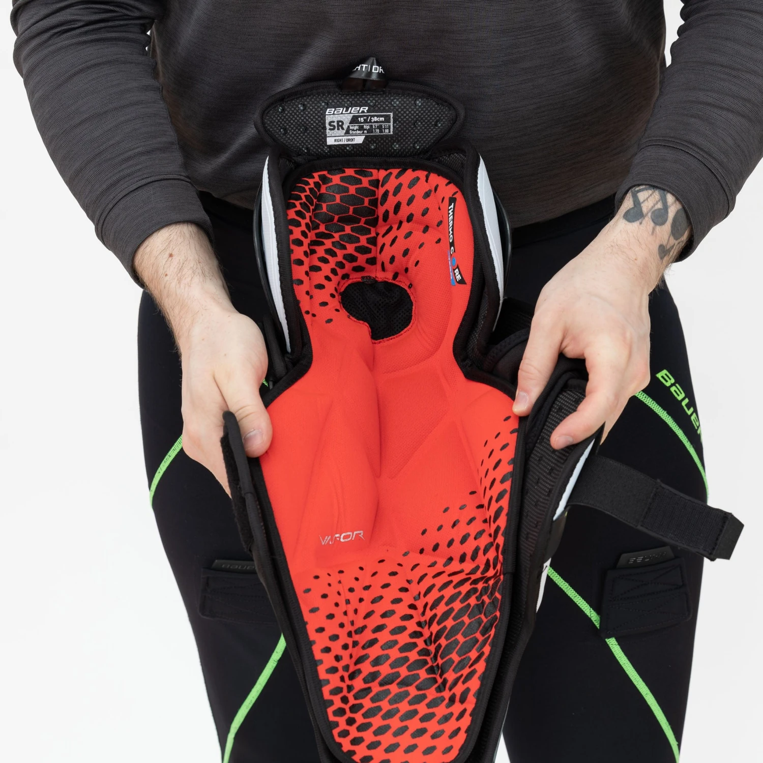 The liner is Bauersโ upgraded Thermocore Zero, designed not only to wick away moisture and repel odour but also to allow for enhanced airflow, so you can keep cool while playing. The liner itself is completely removable if you want some extra space in the knee cap area.