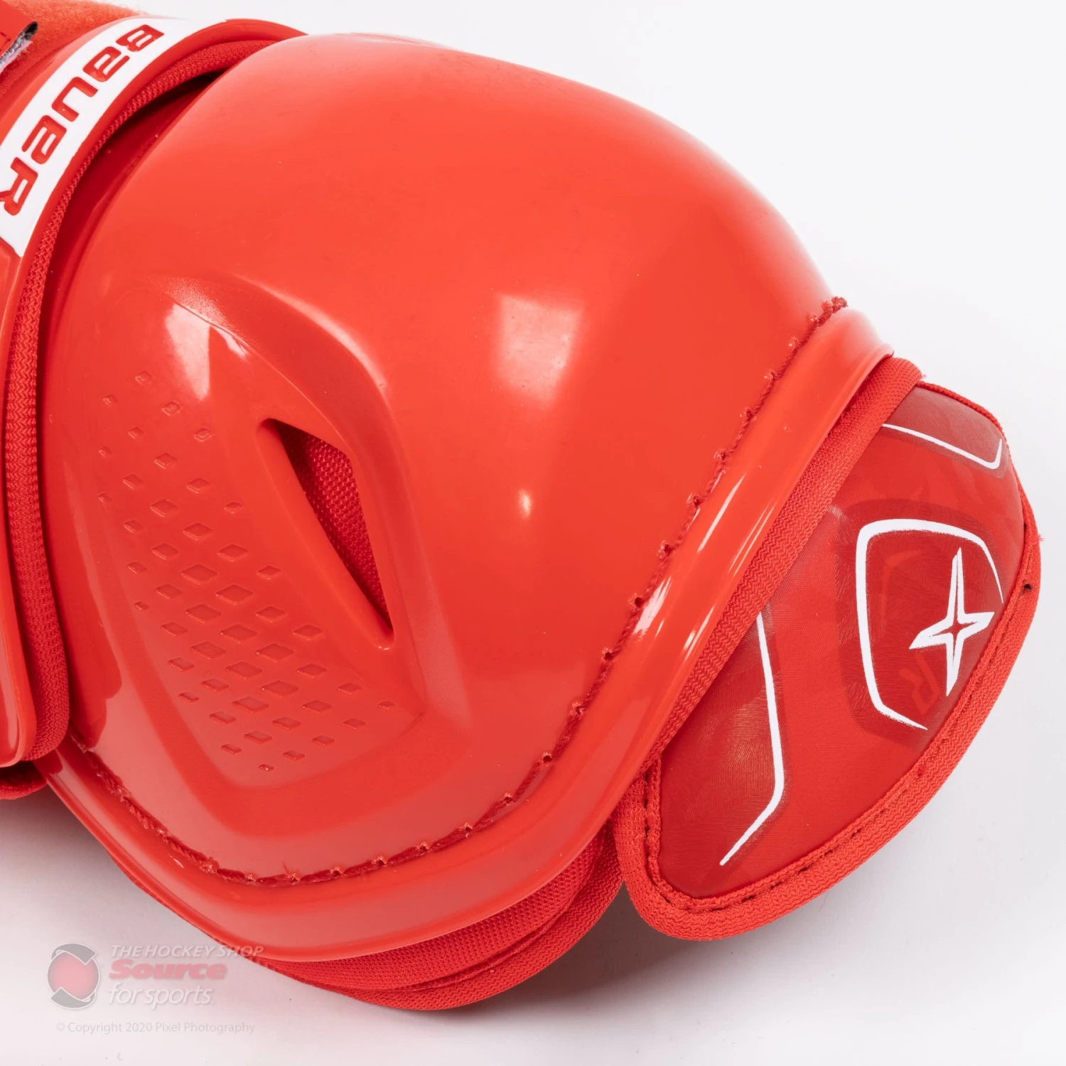 The Vapor X-R Protective line-up is a unique product launch from Bauer, featuring a bright red base with white highlights. The X-R shin guard features X-LITE SHIELD protection in the shin cap with deep fitting knee caps. Also featured is additional protection with a side knee wing, flexible thigh protector and molded calf guard. Finished with THERMO MAX liner and lock strap for comfort and securing, the X-R shin pad delivers protection, comfort, and lots of personality.