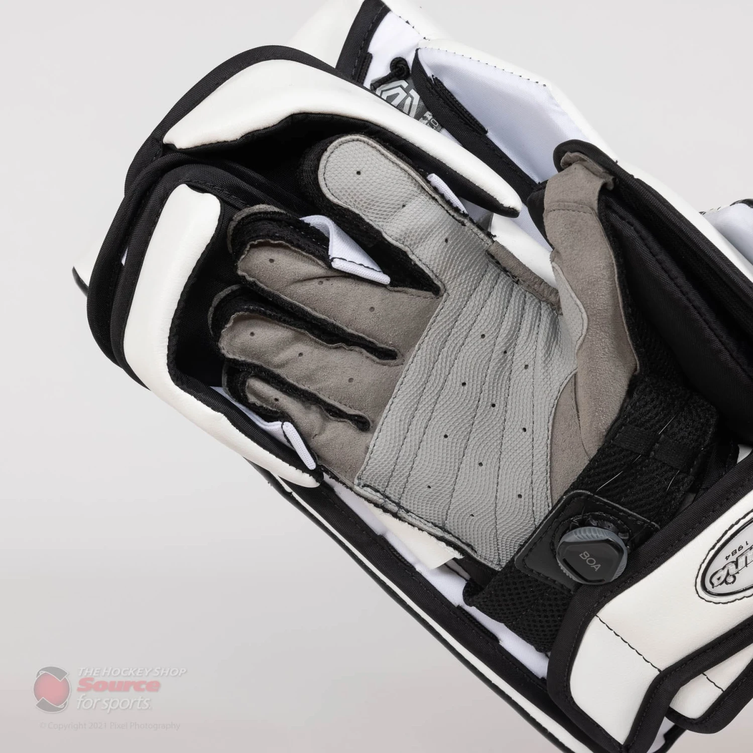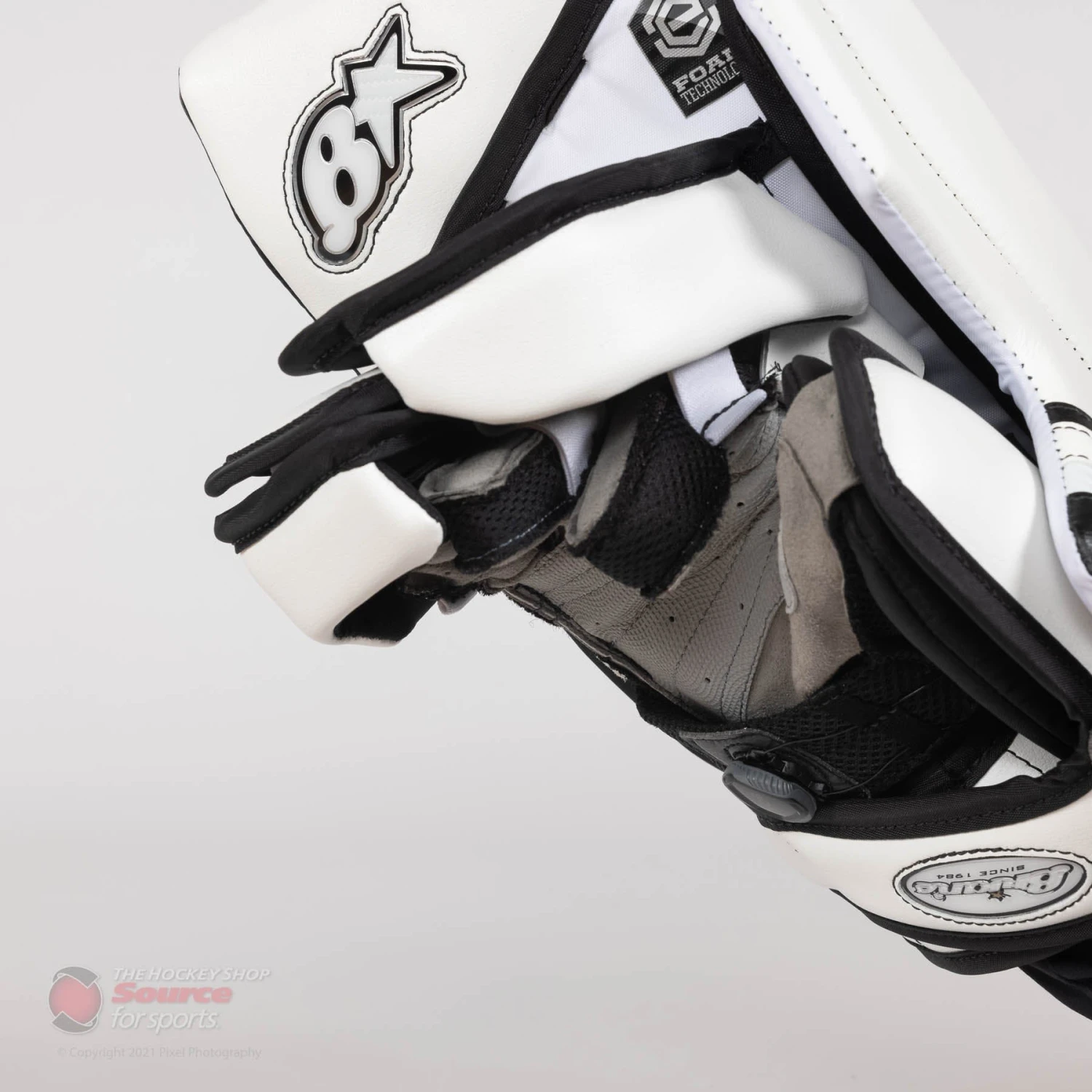 The Brian’s G-NETik V Senior Goalie Blocker incorporates Brianโs new carbon composite Bri-Core to improve rebound explosivity, stiffness, and rigidity. Along with the new graphic, Brianโs continues to use the BOA system to ensure a tight and effective adjustment system. The G-NETik series stands out in its versatility, making it an ideal set for hybrid-style goalies.