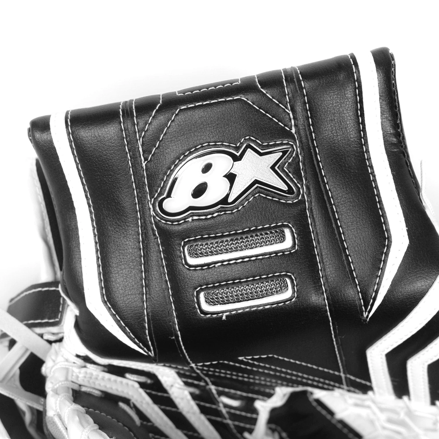 The Optik 3 Senior goalie catcher comes in a Regular hand variation and Black/White, Blue/White/Silver, and White/Red/Black colourways. Additional sizing and colours are available in custom.