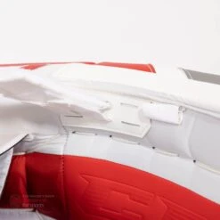 The E-Flex 5 features CCM’s Quick Motion strapping system. After prior success and growing NHL adoption, the QMS system continues on the EFlex 5. Through work with the biomechanics team at Western University, CCM was able to find out what straps were actually needed on a pad, along with which configuration performed the best. The two velcro calf straps and knee strap make the pad lighter, along with giving the pad great responsiveness and butterfly drop speed. The toe bridge of the Eflex 5 has a velcro bungee system, in the place of traditional skate lace. CCM’s bungee system is quick and secure, and allows for more flexibility, easing the stress on goalies’ joints.