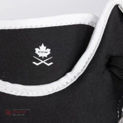 The back hand of the CCM E5.5 catch glove features velcro adjustments for the fingers, as well as the back of the hand. Goalies can also customize their fit by the quick release webbing strap on the wrist, which allows for easy and secure adjustment.