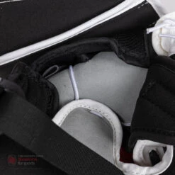 The CCM E5.5 catcher is wrapped in CCM’s proprietary SpeedSkin material. SpeedSkin on a blocker doesn’t have the same slide benefit as it does on pads. However, it is a lighter material than traditional Jenpro, and keeps the material consistent throughout a goalie’s entire setup.