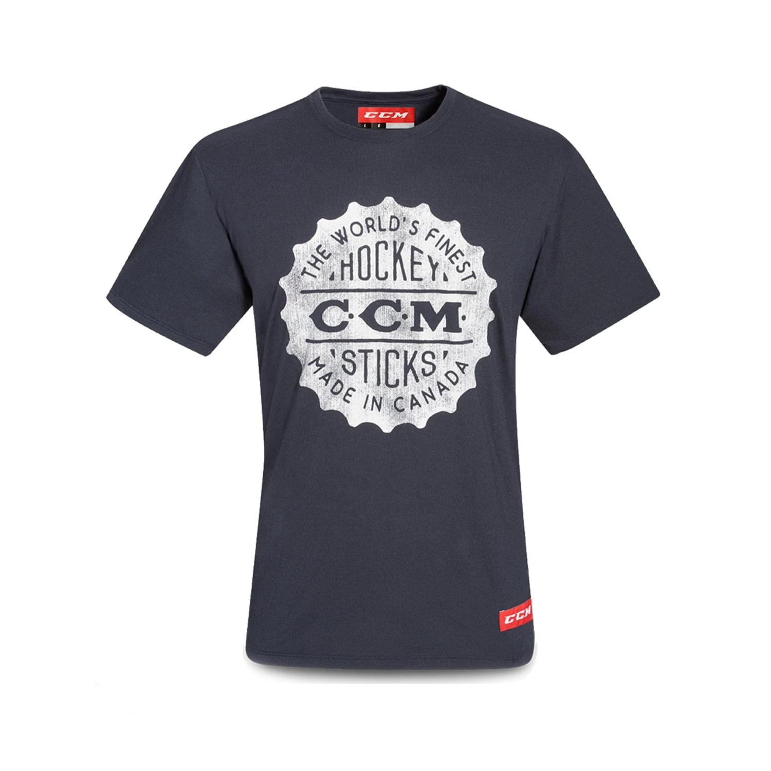 Distressed screen-printed. CCM Heritage bottle cap logo.