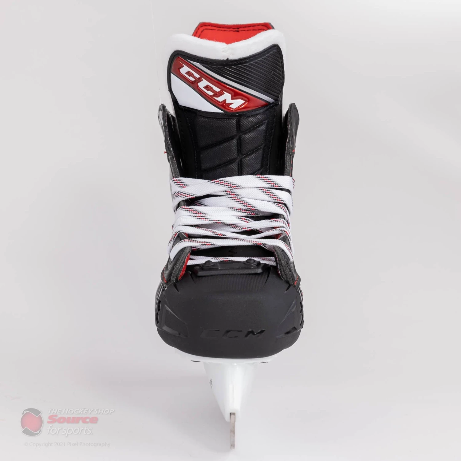 The graphic on the CCM Jetspeed FT4 Junior Hockey Skates are quite similar to that of the FT4 Pro. The flashy but clean black red and white pattern will have the skates sure to be noticed.