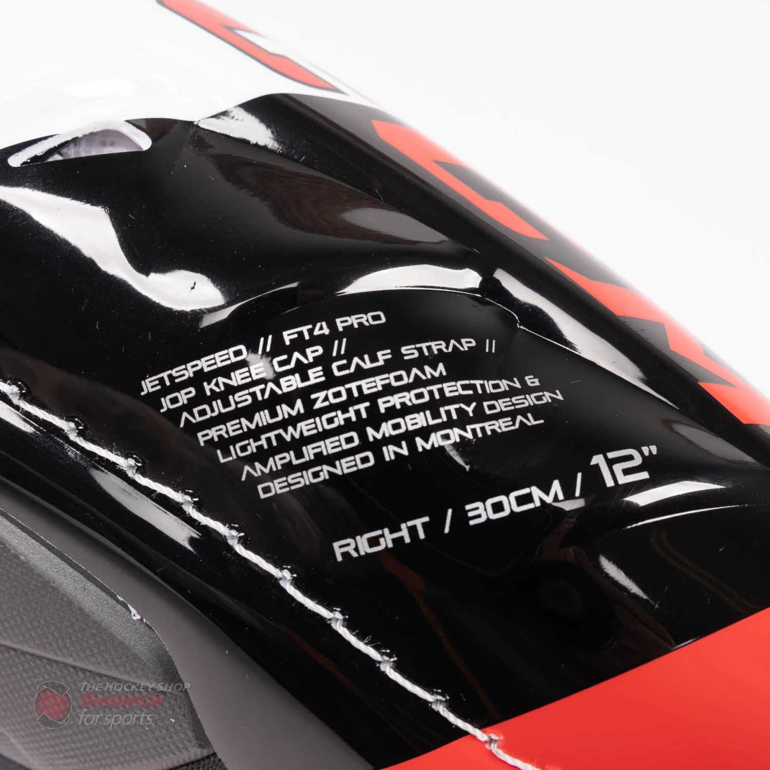 The CCM Jetspeed FT4 Pro JR Hockey Shin Guard was engineered to feature protection for elite level youth players, while having a narrow anatomical design to keep the guard lightweight and mobile to focus on freedom of movement. The new profile of the FT4 Pro shin and knee caps strike a perfect balance of coverage without being too wide. Despite being really comfortable, it has a very locked in fit that eliminates slippage when strapped in.