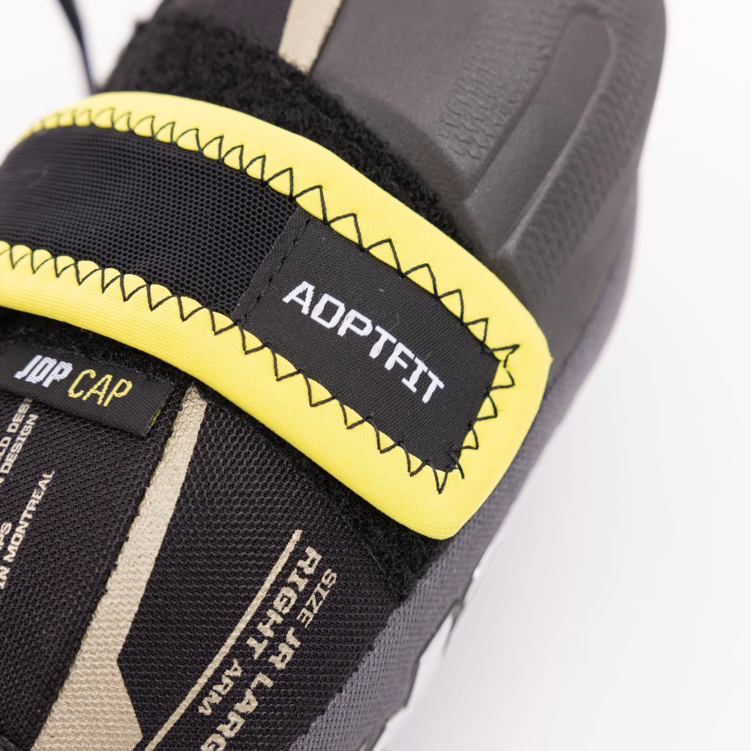 The bicep is covered by a two-piece floating, articulated and reinforced bicep guard. The two-piece construction is built to give you pro-level protection, no matter how you move on the ice.