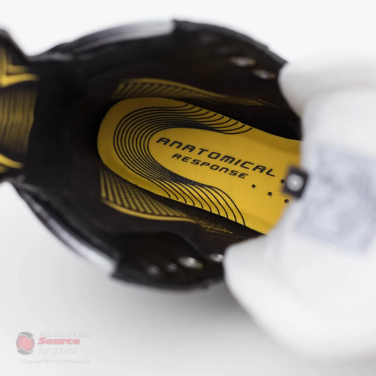 The tongue on the CCM Tacks Vector Pro is taken from the AS1 skate, which uses a Tri-Tech 10mm white felt tongue with molded lace-bite protector for advanced protection, comfort, and forward flex.