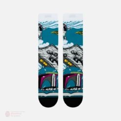 Use the captured bounty hunter, Boba Fet, as a showpiece on the new Stance Star Wars Warped Boba Socks.