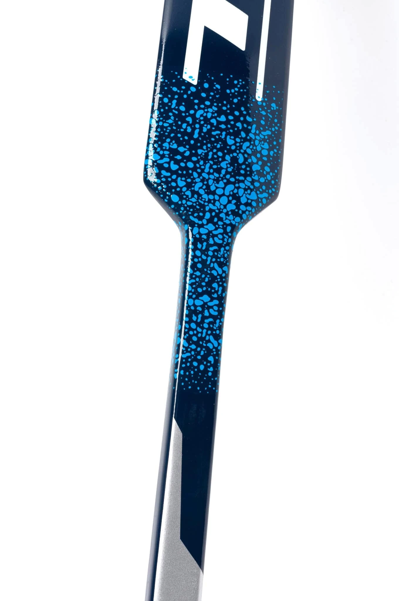 A unique speckled grip pattern is used on the shoulder of the AX5 goal stick. It provides a solid feeling grip when holding the stick but is slick enough to allow for quick poke check or puck playing motions where your blocker needs to be able to slip away.