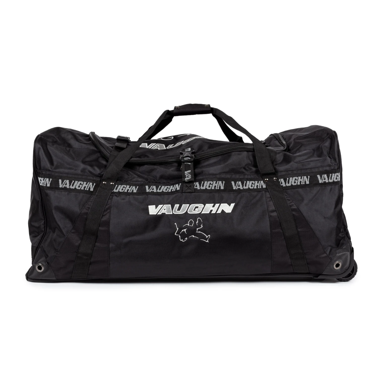 The Vaughn Velocity V10 Pro senior wheel bag is made of a durable 1680 denier nylon exterior that resists rips and everyday abrasions. Embroidered silver logos give the bag a sharp look while heavy duty #10 zippers keep your gear zipped up inside. Both the carry straps and end handles are box stitched and riveted onto the bag for superior durability and resistance to ripping. The internals of the bag feature end and side pockets helping to separate your gear allowing it to be more easily found and to dry quicker. A stable three wheel design gives the bag a stable, supportive base no matter what type of terrain youโre rolling it over.