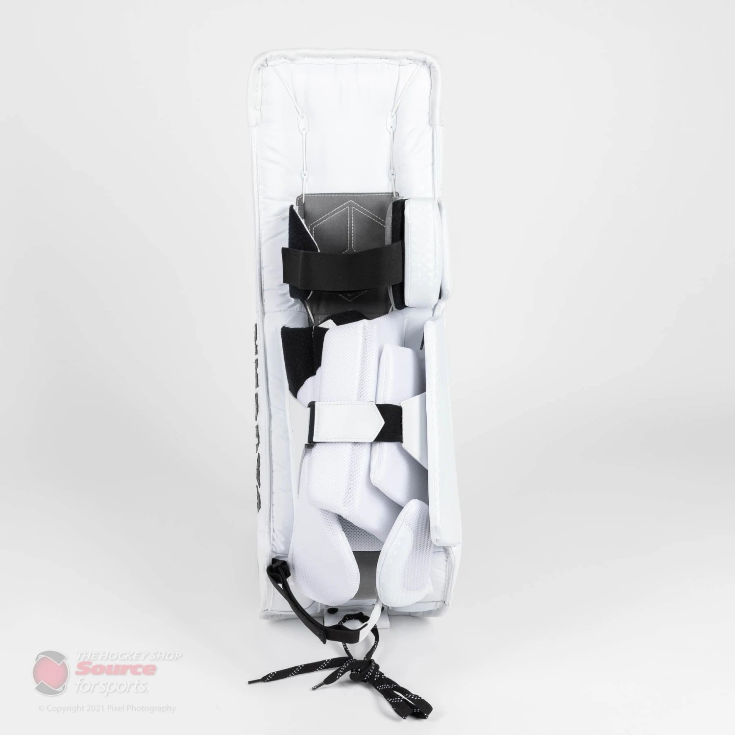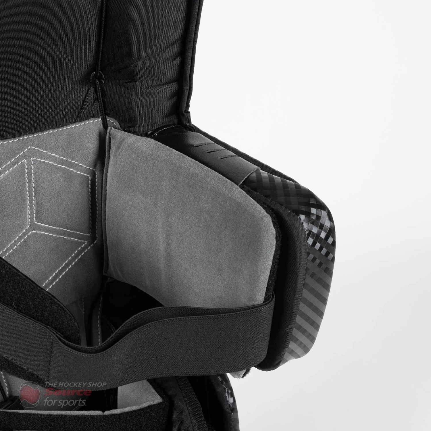 While still a fairly tight fitting leg channel, the V9 Pro Carbon has a widened inner leg cradle overall when compared to previous Velocity pads giving goals the feel of a tight fitting leg channel while offering the better rotation associated with a looser leg channel. Finally, the V9 Pro Carbon features a velcro bootstrap as well as the same bungee toe tie system seen on the SLR2 leg pads.