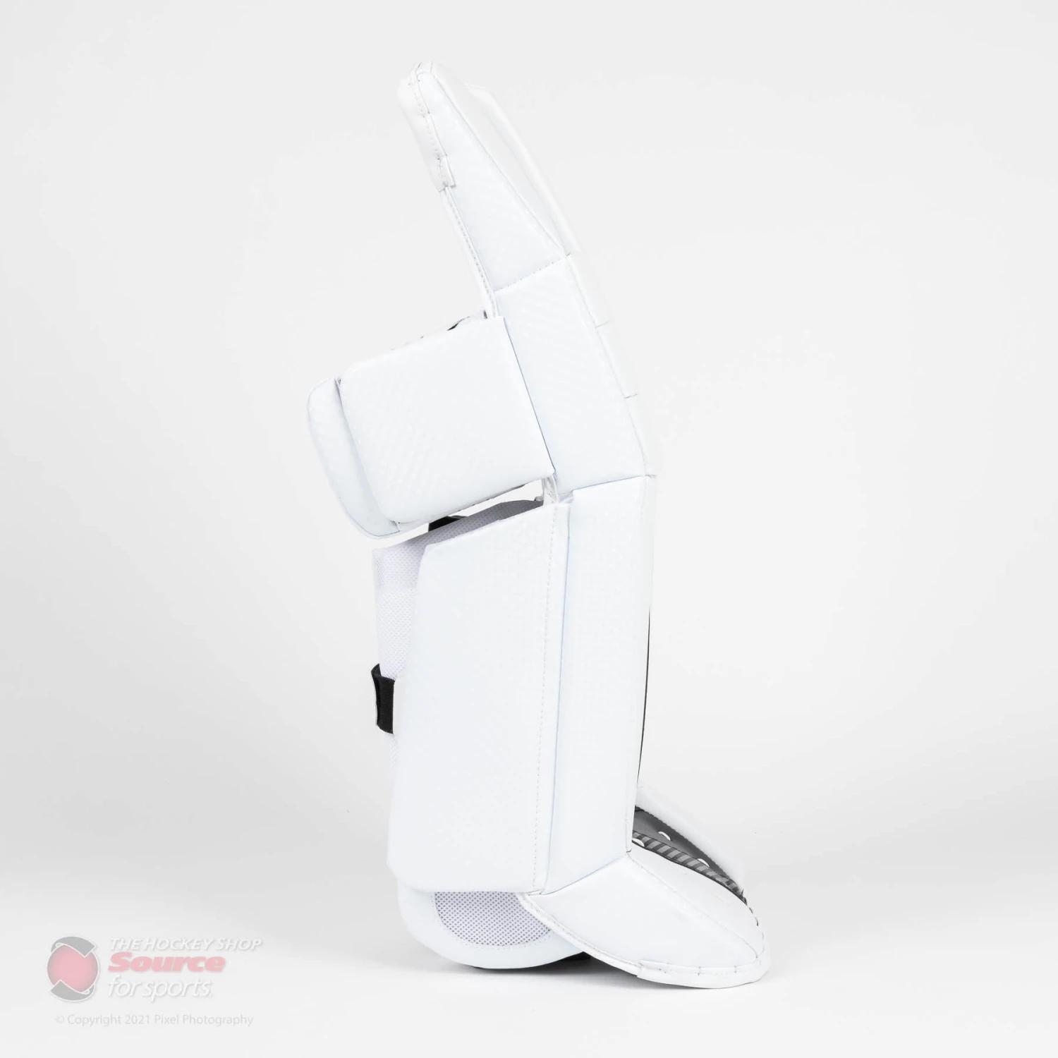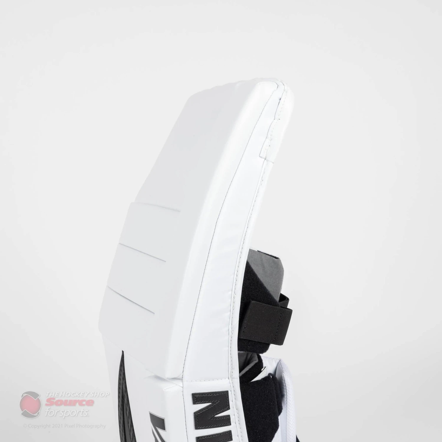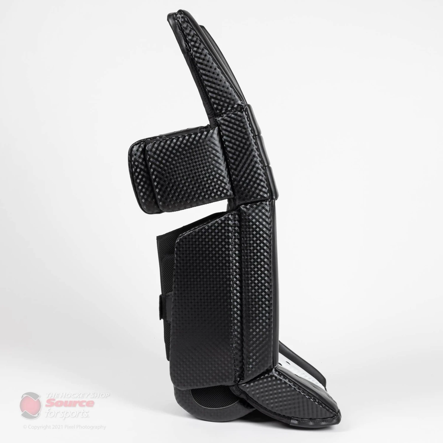 The V9 Pro Carbon leg pad takes advantage of Vaughn’s renowned Canadian made quality. Using only the best materials available to them, the V9 Pro Carbon uses a durable leather face combined with a QuickSlide slide surface and toe binding for superior slide and durability in high wear areas. A soft, comfortable Nash-like material lines the knee block, upper calf and instep leading into the calf wrap made of a breathable, durable nylon interior with a lightweight mesh exterior.