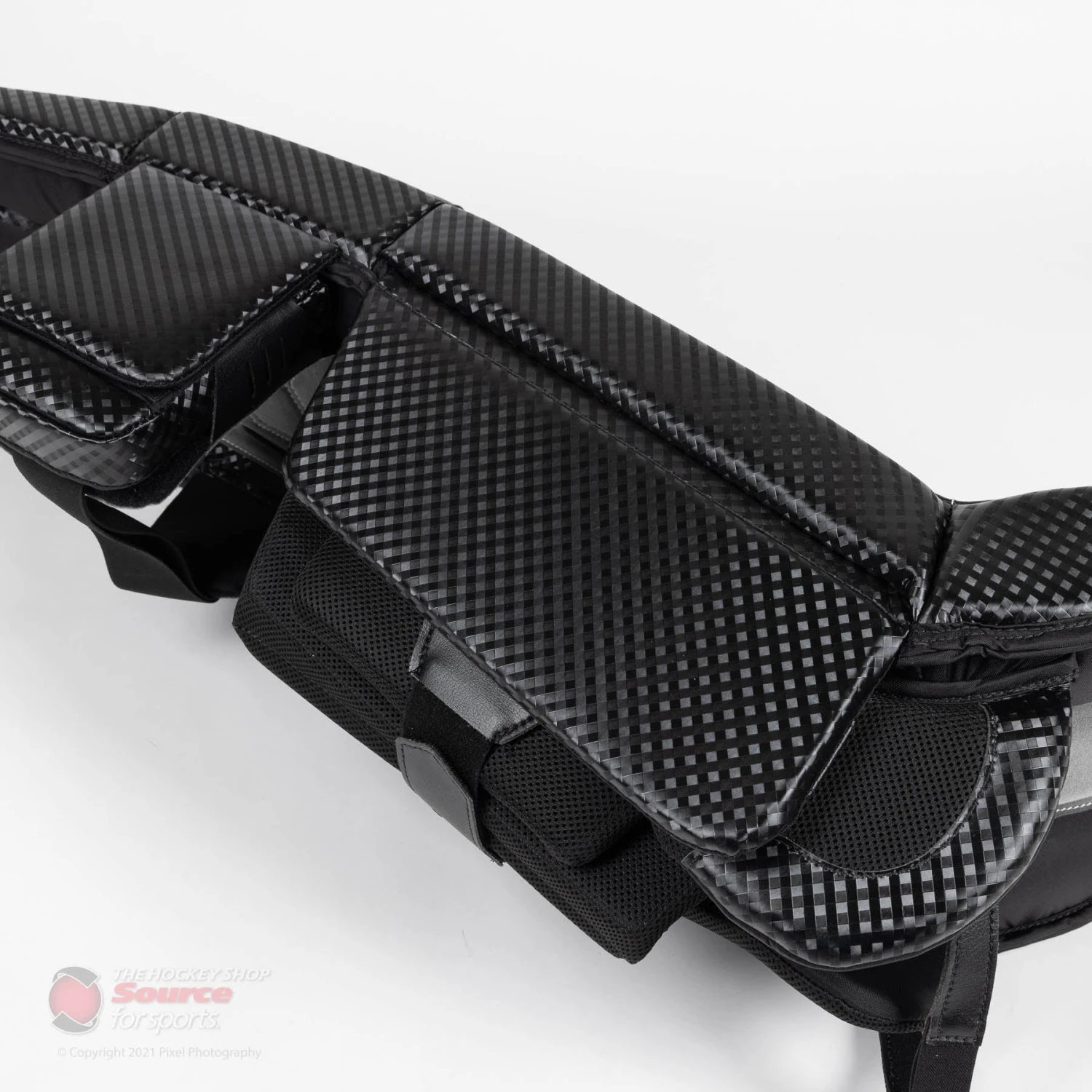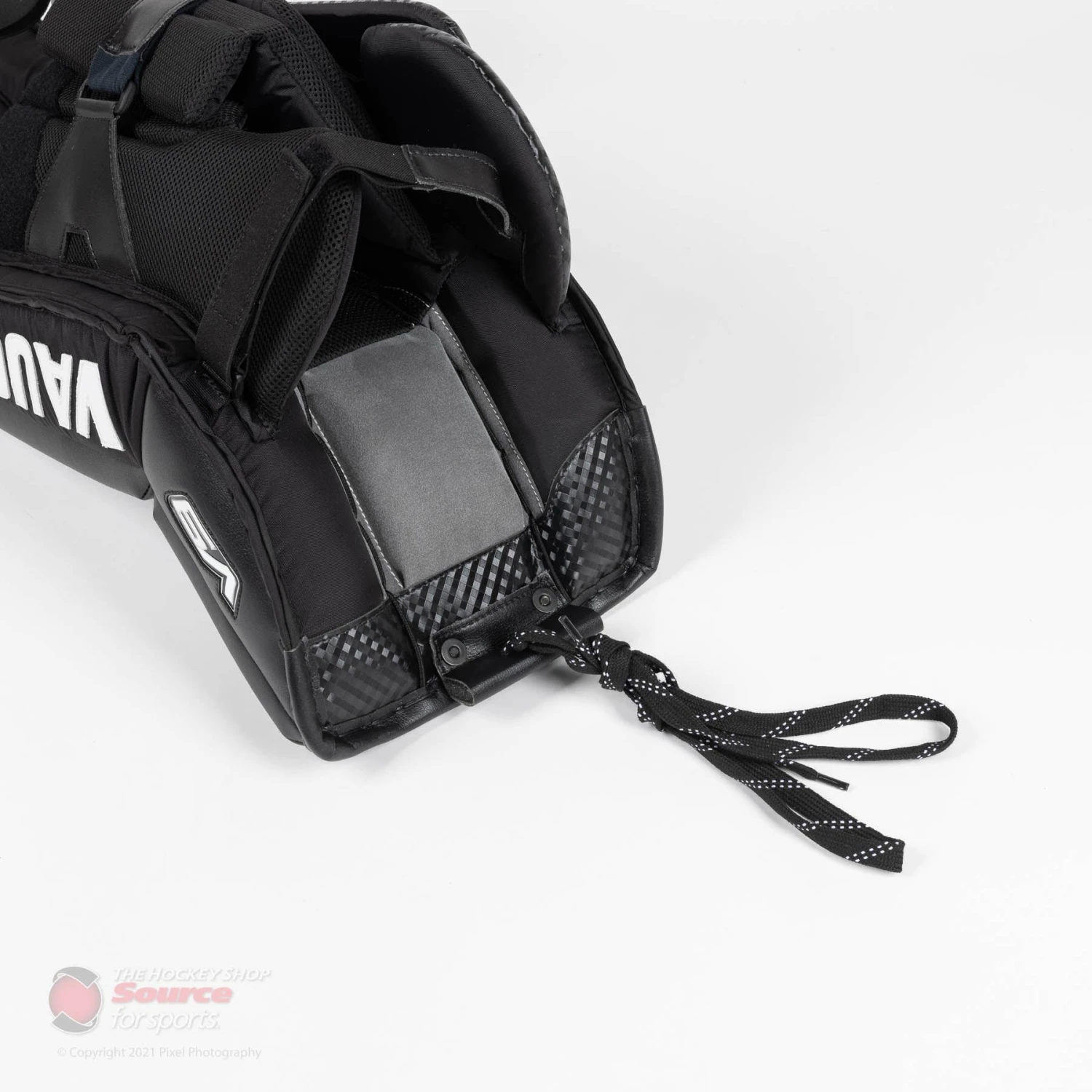 A lower profile, single break outer roll provides good flexibility while further reducing the weight of the V9 Pro Carbon pad. The squared off upper thigh provides better seal and coverage compared to previous Velocity pads and other softer pads. Finally, as the name implies, the V9 Pro Carbon utilizes layers of Vaughn’s new Pure Carbon running tip to toe on top of their sturdy pro core allowing it to maintain its shape while still providing the familiar Vaughn cushion that they have become famous for.