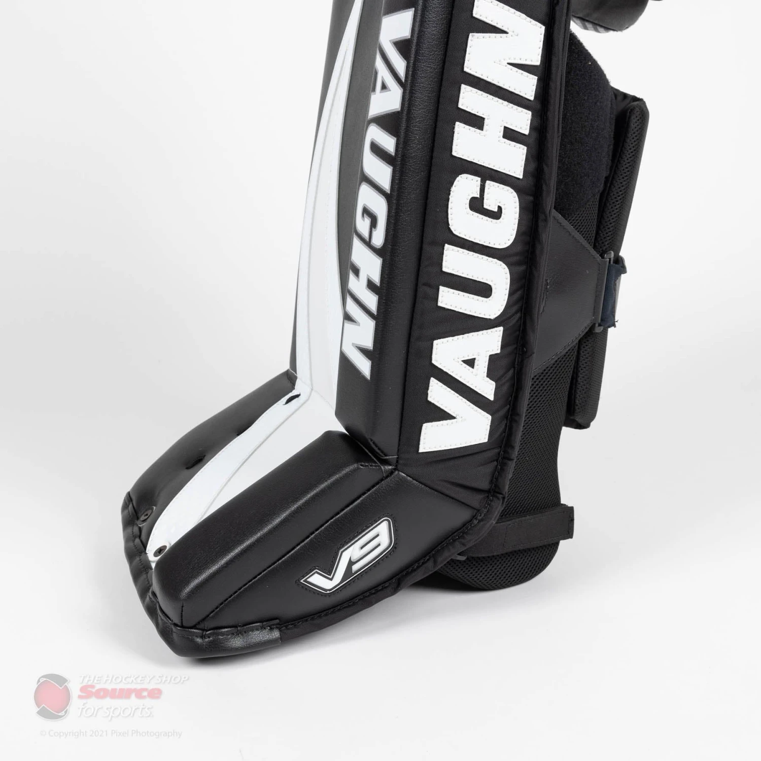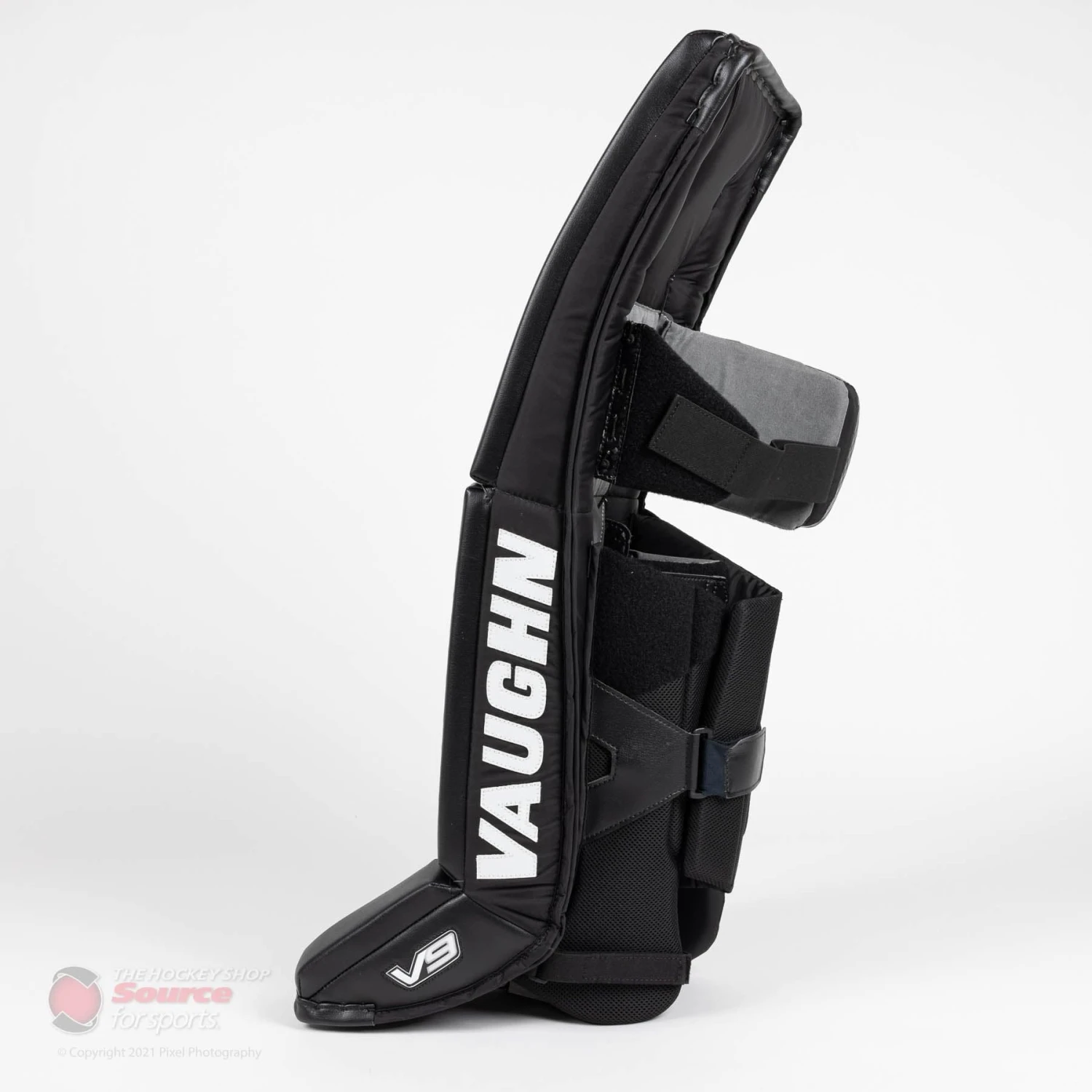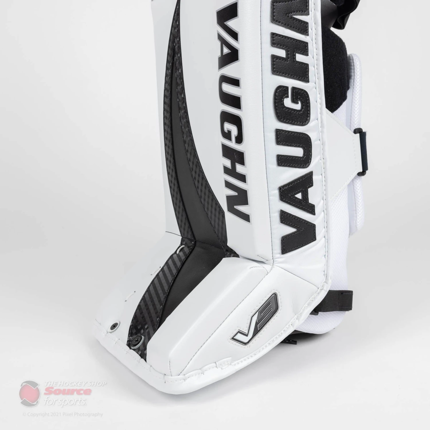 The Vaughn Velocity V9 Pro Carbon leg pads are designed to give the elite level goaltender the ideal combination of modern technologies with a traditional feel. Built with a Pure Carbon insert running the length of the pad along with high quality foams, the V9 Pro Carbon is able to offer a soft feel while remaining durable and maintaining its easily flexible pre-curved shape.