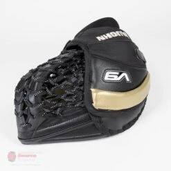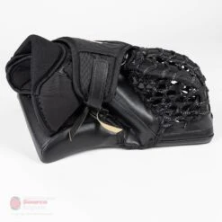 The Vaughn Velocity V9 XP Pro Carbon Senior Goalie Catcher is aimed at the elite level goalie who wants a comfortable yet protective glove that’s easy to close right off the shelf. It uses a break angle that gives it a similar feel to a CCM 590 closure. Vaughn uses carbon layering in the palm, thumb, backhand and cuff to provide superior protection and durability while keeping the glove light. A VAS Shock Shield palm and thumb base further increases protection and longevity of the catcher without sacrificing the quick snapping closure. The carbon reinforced split “T” design takes the deep wide appearance of a double “T” pocket and combines it with the quick, snappy feel that a single “T” offers. A lightweight mesh fingerstall construction allows for superior breathability and comfort while a built in internal grip rail on the inside of the palm allows for better grip and closure. The V9 Pro Carbon XP uses neoprene lined internals in order to offer the best in breathable comfort along with the fully adjustable back hand strapping system that provides goalies with a truly customizable fit. A carbon reinforced segmented HD foam back hand and finger tip protector rail provides good protection from all angles of the glove without losing flexibility. Compared to the regular V9 Pro Carbon, the XP features a true one-piece cuff construction along with an extended finger tip section. Finally, as with all pro level Vaughn gear, custom colours, sizing, graphics and other options are all available.