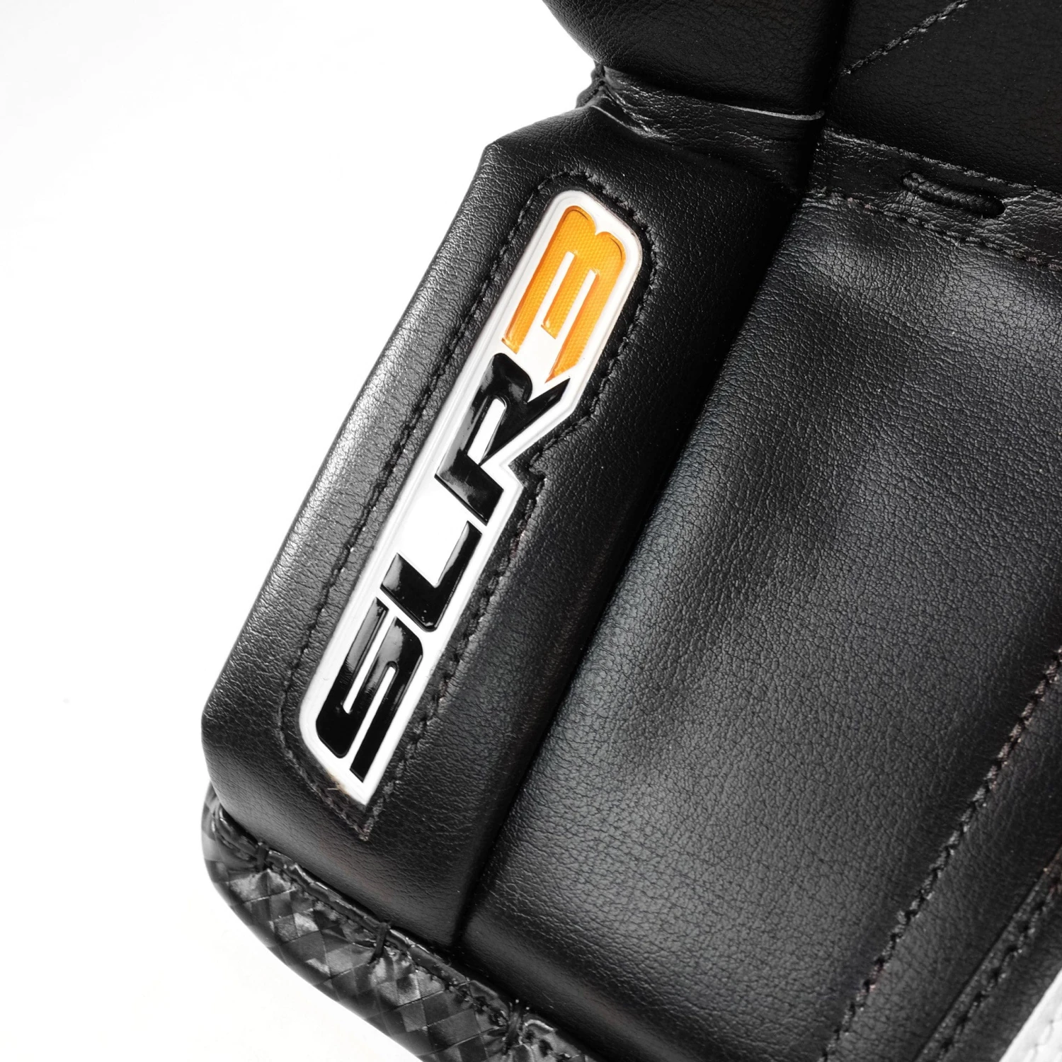 The pads are made of jenpro material on the outside and have more of an L-shape profile compared to the SLR2, which was more S-shaped. Vaughn reintroduced their highly favoured QuickSlide along the inner surface of their pads for this iteration. QuickSlide is renowned among many high-level goalies as having some of the fastest slide in the game.