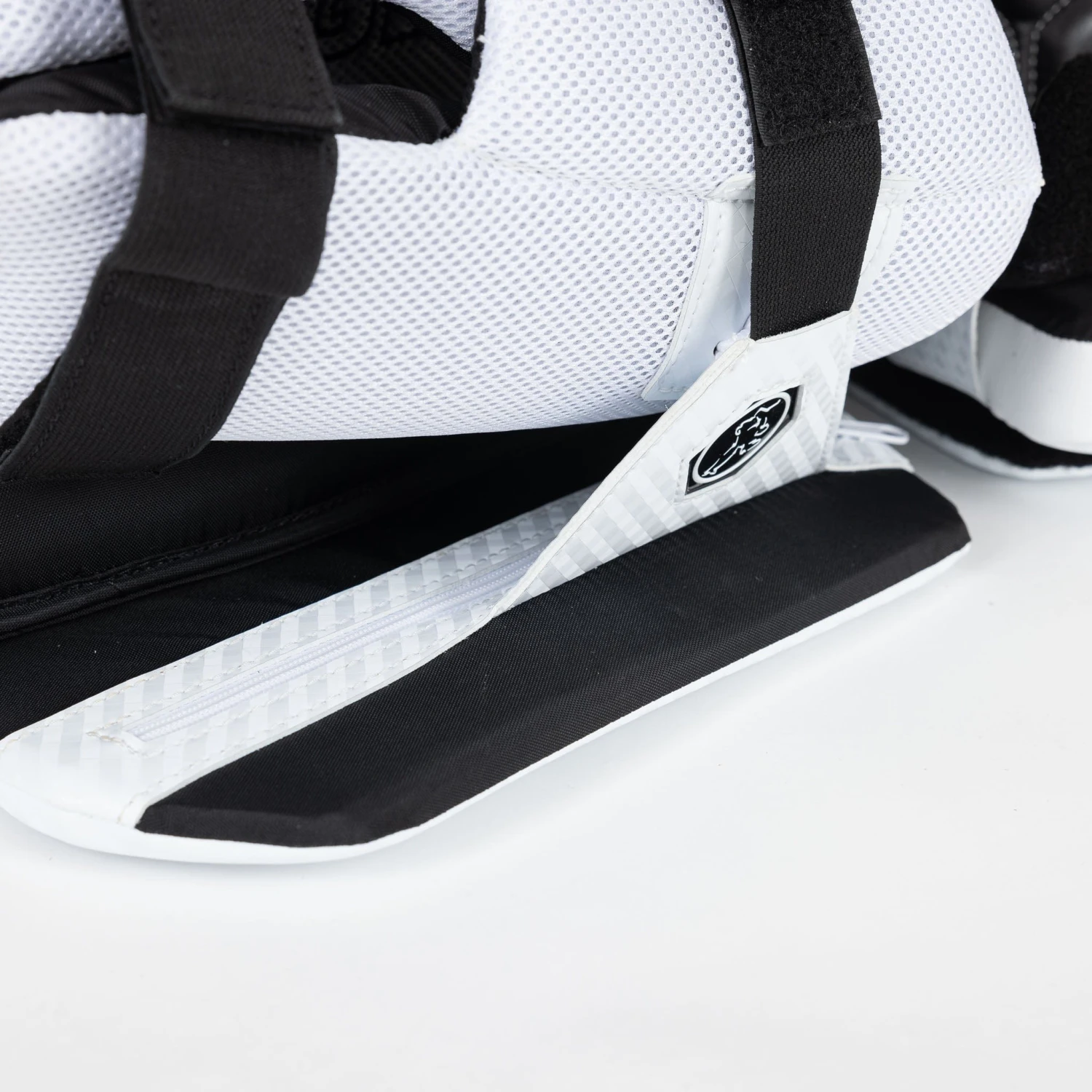 The balance stabilizer can be found in the knee cradle and helps keep you steady while you play. The knee cradle itself has been widened, with a tapered outer edge and deeper inner knee side panel to make it easier to keep your balance. It also improves pad rotation, an important aspect for butterfly goalies. These features also ensure a closer fit.