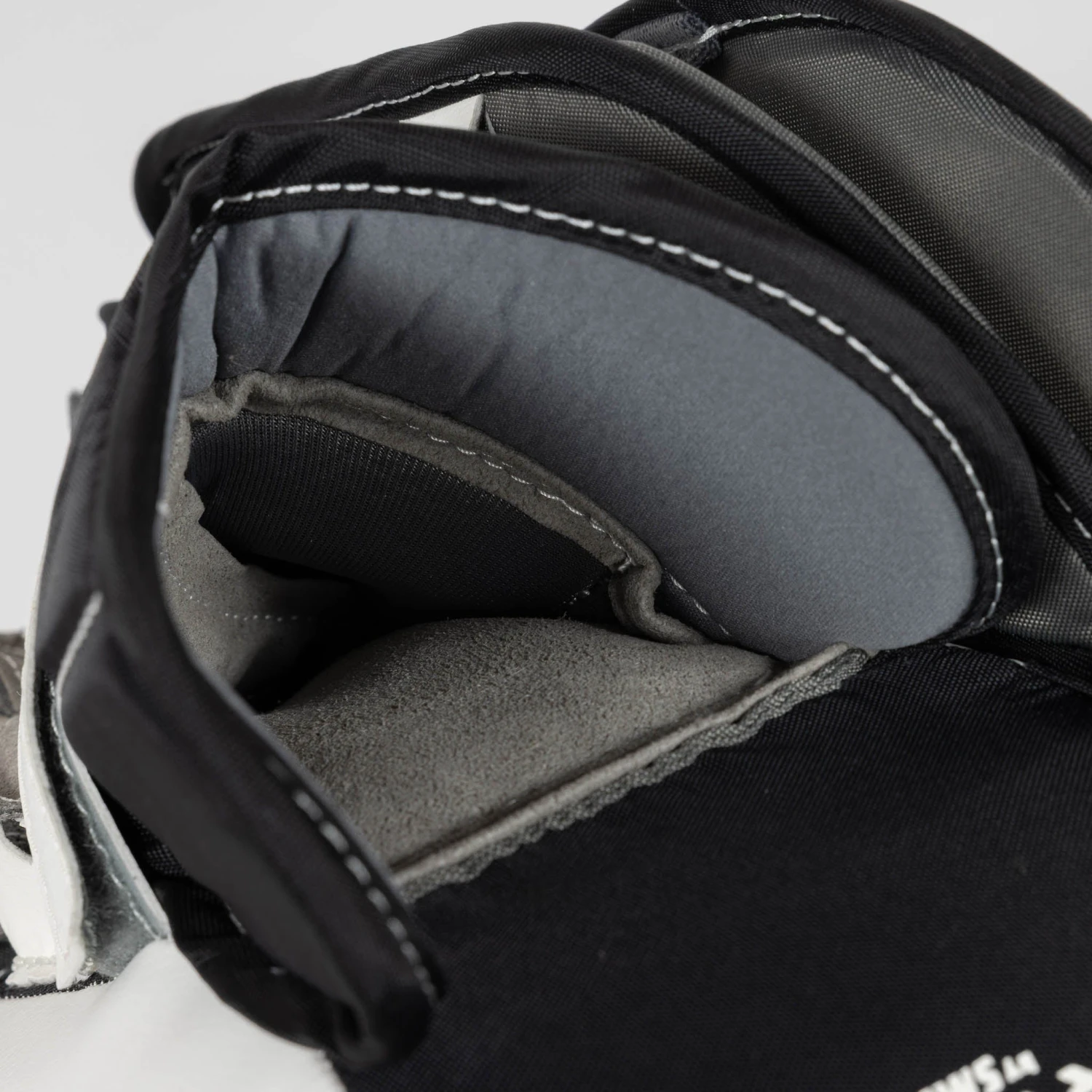 The G6 blocker is built with a lightweight and comfortable construction that is perfect for developing goalies. This blocker includes a thick board and specializes in rebound speed.