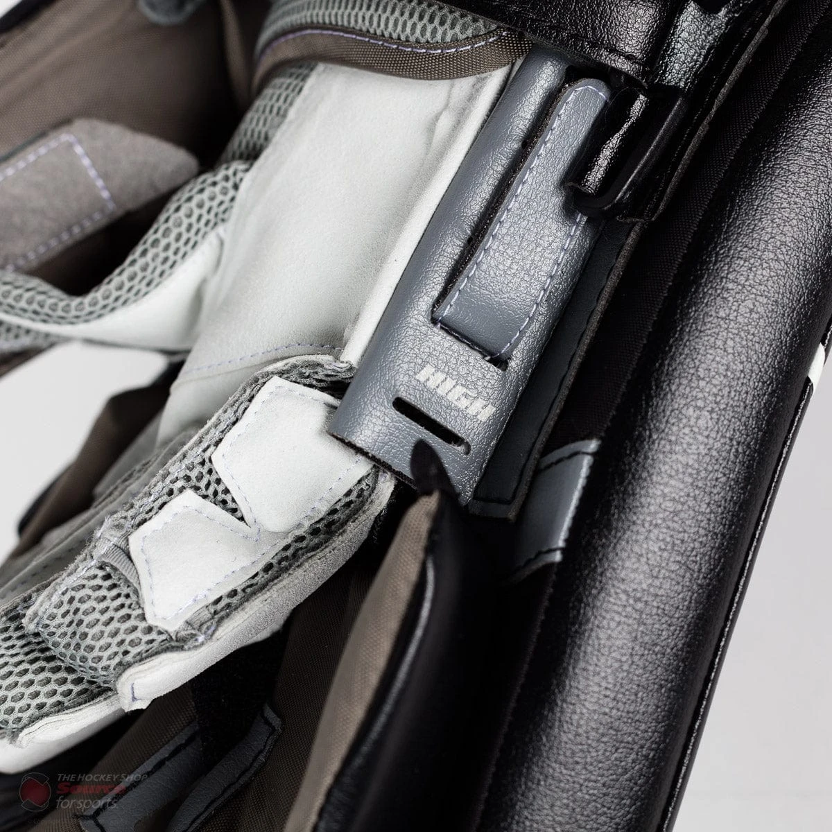 The side board of the blocker also features ample finger protection, designed to fit the goal stick without any weak spots but also no interference. The GT2 blocker has contoured finger protection to make sure your fingers are protected, no matter the shot. Using plastic molds and HD foam, you can be confident on any shot knowing youโre protected. The finger protection also has velcro adjustments to add customizability to how tightly your fingers are connect to the finger protection, giving the choice of mobility.