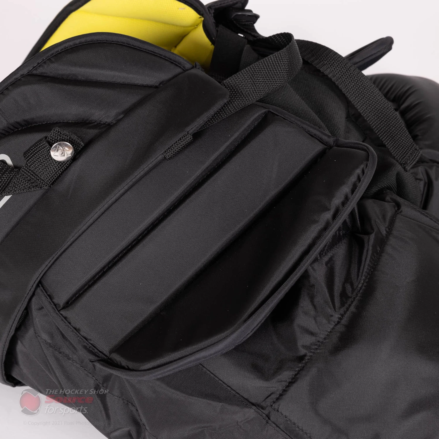 The Warrior Ritual X3 E Intermediate Goalie Pants come in a black colorway with volt liner and grey logos. The Intermediate Ritual X3E Pant comes in sizes S/M, M/L, and L/XL.
